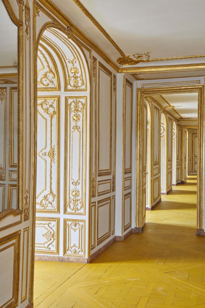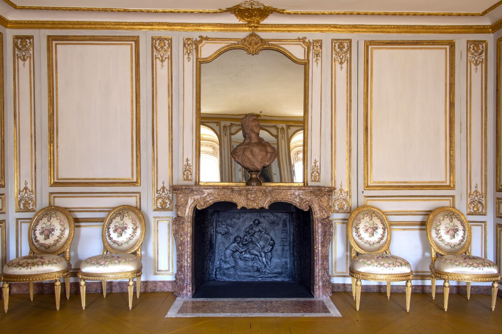 Jeanne Du Barry was a woman of exceptional taste and an avid reader. After a strict education in a convent school she worked various jobs in Paris, the most significant being a salesgirl at Labille, one of the most reputable fashion stores in Paris where she developed her taste and knowledge of fabrics, jewelry and accessories. All of this would contribute to her presence at court, where she wasn’t accepted by everyone, including the wife of Louis XV’s grandson, the very noble Marie-Antoinette. Her private apartments, located on the second floor of the Château of Versailles were just one floor above those of Louis XV, who enjoyed making his hot chocolate and marzipan in his own kitchen. The King, known as the Beloved King by his people, could easily reach the apartments of his favorite through several private (secret?) staircases. Madame Du Barry’s apartments stretched out modestly over 14 rooms making up one of the most refined ensembles in the palace. After an 18-month restoration they have been returned to their former splendor using traditional techniques and through the participation of myriad craftsmen, notably carpenters, gilders, marble workers and stuccoists.