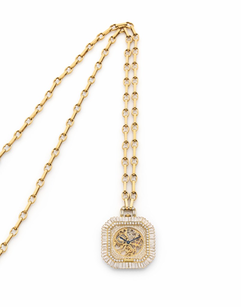 Left: This Cartier pendant watch in yellow gold and diamonds is estimated at US$9,000 to US$13,500 (8,000 to 12,000 euros). Photo courtesy Artcurial. Handout via The Gourmet Gazette. Right: This FP Journe 2007 Tourbillon Souverain watch in platinum with a Remontoir d’Egalité (a constant force device) and deadbeat second, tourbillon and power reserve is estimated at between US$169,000 to US$225,000 (150,000 to 200,000 euros). Photo courtesy Artcurial. Handout via The Gourmet Gazette