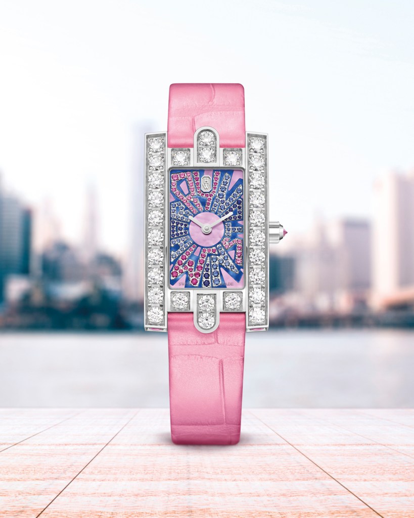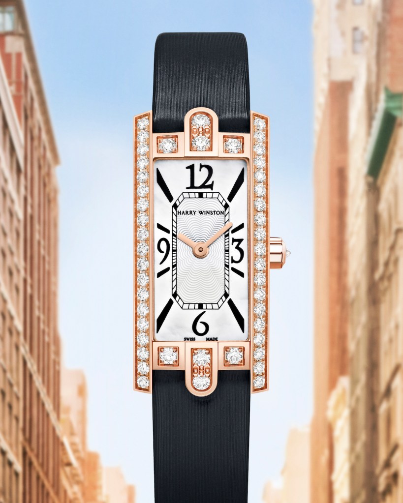 Art Deco inspired timepieces from the Harry Winston Avenue collection. In the background scenes of New York City. All rights by Harry Winston. Photo courtesy Harry Winston. Handout via The Gourmet Gazette