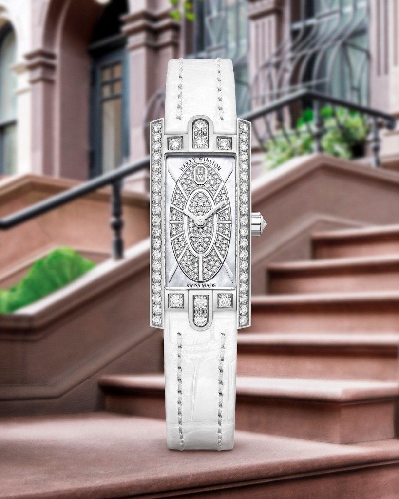 The Avenue collection timepieces feature a sleek rectangular case anchored by the House’s iconic arch motif. The Avenue family includes three sub-collections with cases crafted in 18K white or rose gold and set of course, expertly, with diamonds. The models are dubbed Classic, C and C Mini. The larger models, Avenue Classic and Avenue C feature a special finish with specially crafted cases designed to match the natural curvature of the wrist. All of the Avenue’s dials are framed and set with diamonds and exude a certain sophistication. The watch collection is inspired by 1930’s New York and so most of the Avenue timepieces feature geometric forms like circles, ovals and octagons drawing their inspiration from Harry Winston’s iconic emerald-shaped logo.