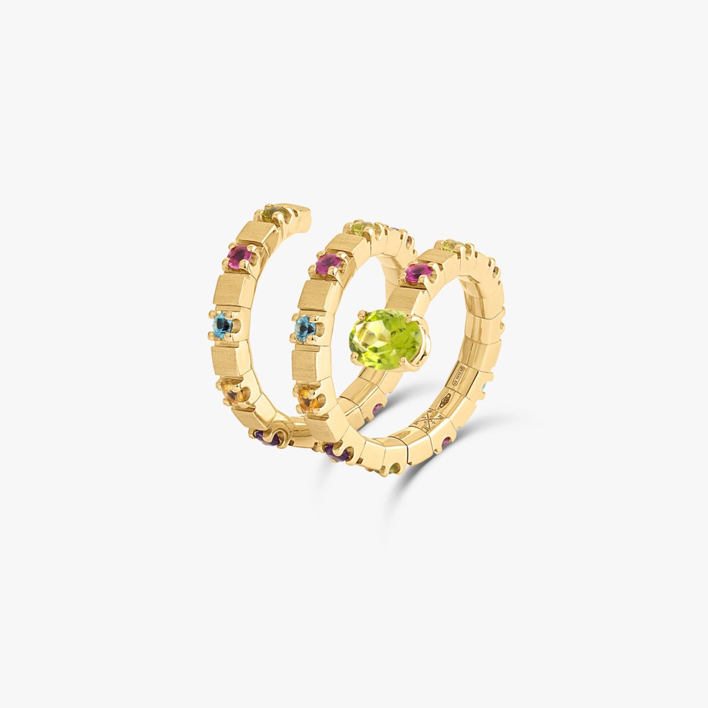 Left to right: Snake ring, Rainbow Tennis bracelet in 14k gold and topazes, another take on the snake ring all from the Shiraz collection from the house of Ashaha. Photos courtesy Ashaha. Handout via The Gourmet Gazette