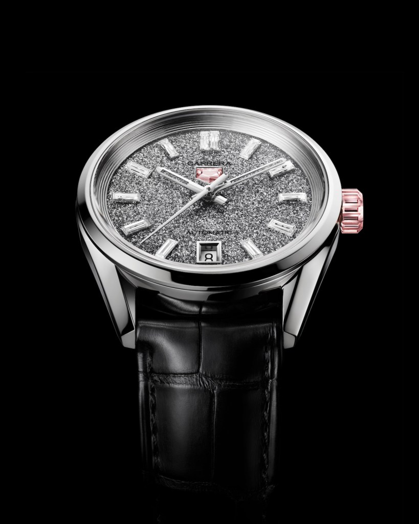 It’s time to see yet another wonder from the Watches & Wonders show held in Geneva this year. TAG Heuer introduced the TAG Heuer Carrera Plasma Diamant d’Avant-Garde 36mm timepiece with pink diamonds showcasing the house’s innovative spirit and taste fo the avant-garde. The house is using lab-grown diamonds in all shapes and forms and now also in color. This innovation can be enjoyed on the house’s Carrera Plasma Diamant d’Avant-Garde revealed at the Geneva show and benefitting from Tag Heuer’s breakthrough Diamant d’Avant-Garde technology. In a first for the house the watch introduces a combination of pink and white-lab grown diamonds with colored lab-grown diamonds to be used more extensively on luxury watch models in the future. This amazing pink color—with further color options to follow— is obtained during a special diamond growing process. The Carrera Plasma Diamant d’Avant-Garde 36mm timepiece is brought out in white gold with on its signature crown, a 1.3 carat pink lab-grown diamond, The unique 2.9-carat dial is outfitted with 12 white gold indexes and paved with white lab-grown diamonds. Above them a special shield-shaped pink diamond sitting just below the Carrera dial logo. A black alligator strap with a white gold buckle round out the elegance of this luxurious timepiece.