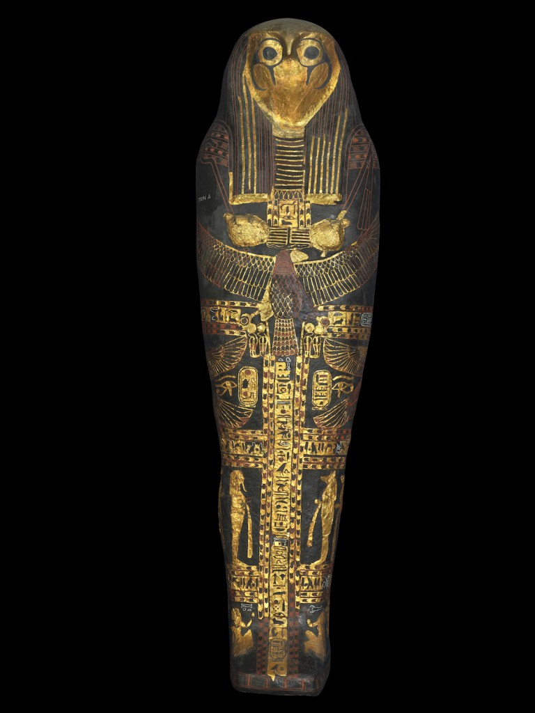 Treasures from the royal tombs of the descendants of Ramses II at the ancient capital of Tanis were discovered by the French Egyptologist Pierre Montet in 1939. Vases, statuettes precious jewelry in precious materials like gold, silver, electrum —a naturally occurring alloy of gold and silver — lapis lazuli, turquoise and the translucent and mysterious chalcedony known for its healing properties and ability to assist people in finding the light, were all part of the treasure. Gold amulets, necklaces, funerary masks and objects in gold are all on display along with massive statues and ritual objects.