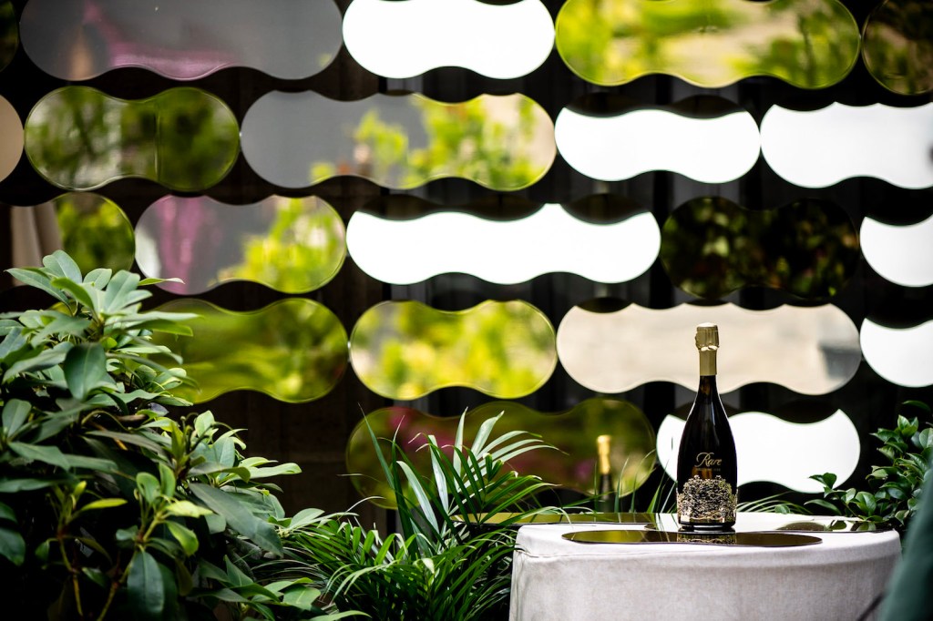 Paris, France —Art, a vintage year champagne and a luxurious 5-star hotel all come together to offer a unique experience in the heart of Paris and possibly one of the city’s best summertime terrace offerings of the season. Rare champagne commissioned contemporary French artist and designer Arnaud Lapierre to create a work of art to accompany the house’s 2013 vintage champagne. Some of Rare Champagnes are known for their unique yellow gold color and the artist created a work entitled RISE that embodies the luminous quality of the autumn sun.