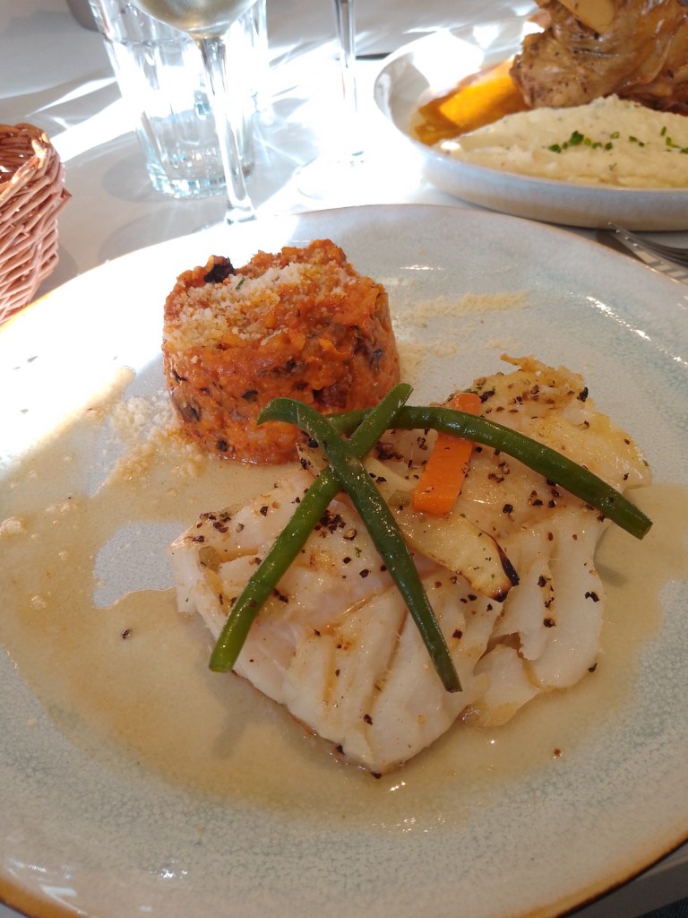 The menu offered up fulfilling and flavorful dishes. Keep in mind that the menu changes with the seasons but a recent meal started off with a trio of satisfying salmon croquettes — the more gourmet French name is cromequis—which offered a generous portion of ground salmon, potatoes and a bouquet of garden herbs. The marinated sea bass appetizer was flavored with Timut pepper, a peppercorn berry that is native to Nepal, lime and a hint of Meaux mustard. The main courses were also perfectly executed. The precisely peppered fresh cod was served up with a mushroom risotto dignifiedly dusted with Parmesan. The knuckle of the leg of lamb, the cut of choice, was slow cooked, fork-tender simply served in its own jus with a mound of mashed potatoes. The kitchen had a seasonal surprise on offer for us. They wanted us to sample their bûche, the Yule log cake. This was a creamy vanilla affair of dried fruits like apricots and raisins and roasted hazel nuts decorated with edible flowers. However we also indulged in the profiteroles smothered in the house’s hot chocolate sauce. ©Trish Valicenti for The Gourmet Gazette. La Mère Lachaise, a Guy Martin Restaurant, 78 Bd de Ménilmontant, 75020 Paris. Tel: + 33 (0)1 40 30 26 00. https://lamerelachaise.fr/