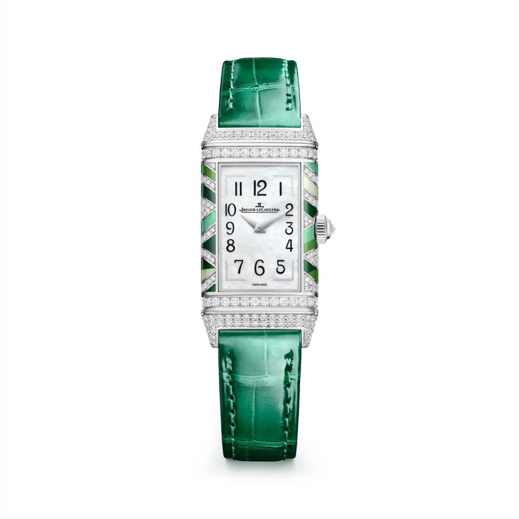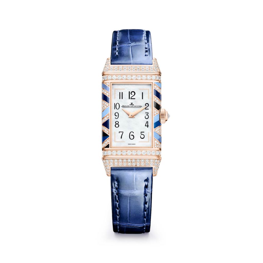 It has been the epitome of elegance for over nine decades now. And a new version of Jaeger-LeCoultre’s Reverso embodies the house’s mastery of the decorative crafts and fine jewelry techniques. The Reverso One Precious Colors features a richly decorated case that pays tribute to the Art Deco style, the hallmark of the Reverso watch which was brought out in 1931 and conceived for the polo field but which began to appear as a women’s watch less than a year after it was introduced. With the front dial facing outwards, the Reverso One Precious Colors has a rich and elegant presence, its white mother-of-pearl dial contrasting with the vivid colors of its enameled frame and the sparkle of the diamond-set gadroons (decorative edgings) and lugs.