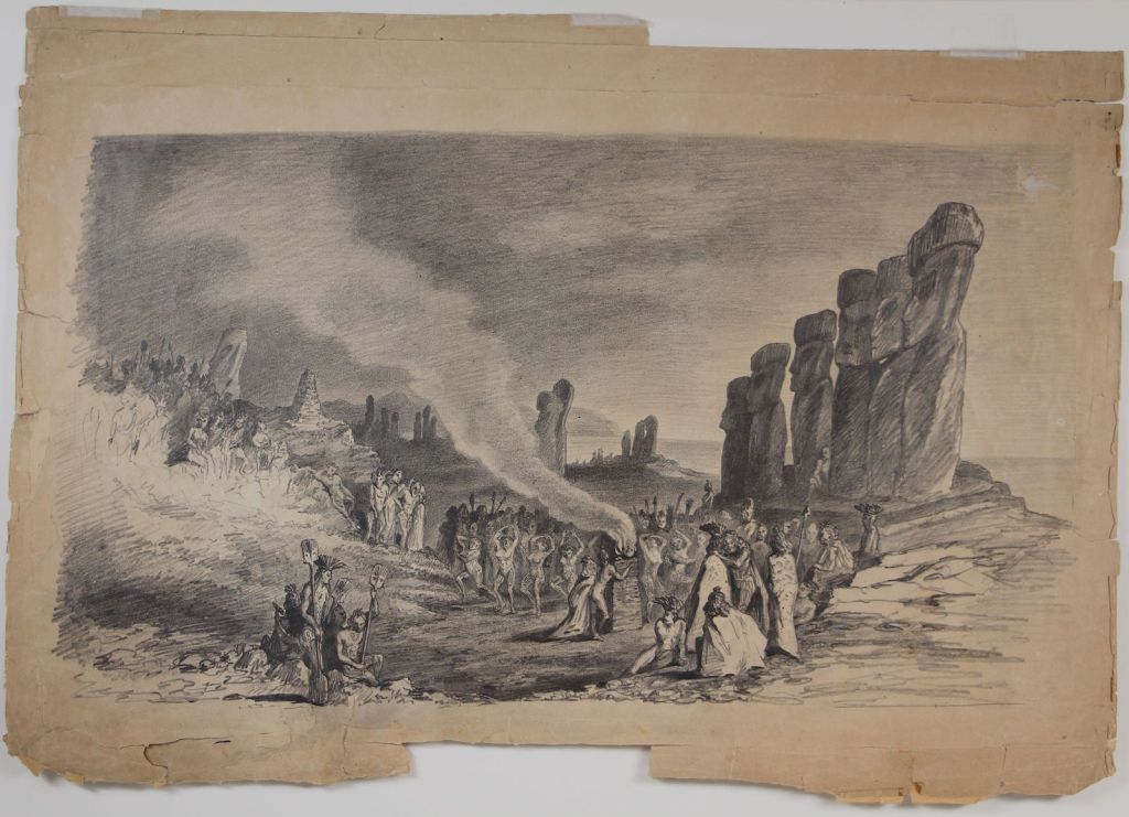 Loti was born Louis Marie-Julien Viaud and the exhibition is entitled, And Julien Viaud Becomes Pierre Loti, the Journey of the Flora to the Pacific, 1872. It traces his voyage, onboard the ship named the Flora, of the young midshipman during his first journey to the other side of the planet when he crisscrossed the Pacific, visiting Easter Island, the Marquesas and Tahiti during which he took note of how Westerners were bringing about the disappearance of ancient, traditional cultures. Wrongdoings that would devastate him and this acculturation of traditional societies would pre-occupy him throughout his life. He wrote a series of articles published in the periodical Illustration at the time and which today is regarded as precious information and insight into the indigenous cultures of the Pacific in the 19th century.