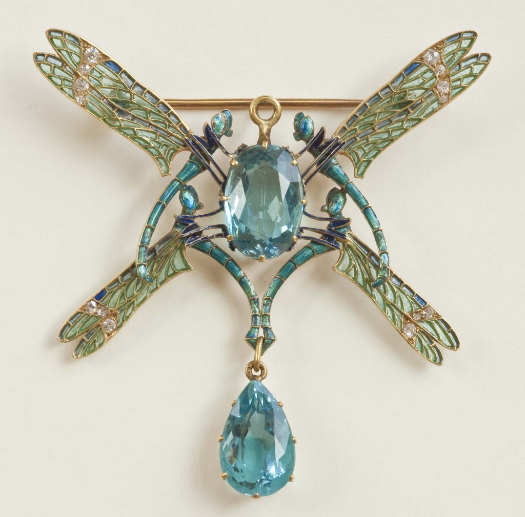 Paris, France — The Art Nouveau movement came in 1890 and went circa 1910, but its soothing, return to nature objects have fortunately remained with us to this day. Flora and fauna, these were central to the movement and working in difficult materials to shape and set, like precious metals and precious gemstones, the jewelry creators of the day, like René Lalique produced tiny masterpieces. Some 100 of these beguiling jewels have been brought together in an exhibition entitled A New Art, the Metamorphosis of the Jewel, 1880-1914 being held at the L’Ecole, the School of Jewelry Arts which is supported by the house of Van Cleef & Arpels. The venue is located just steps away from the world capital of high jewelry, the Place Vendôme.