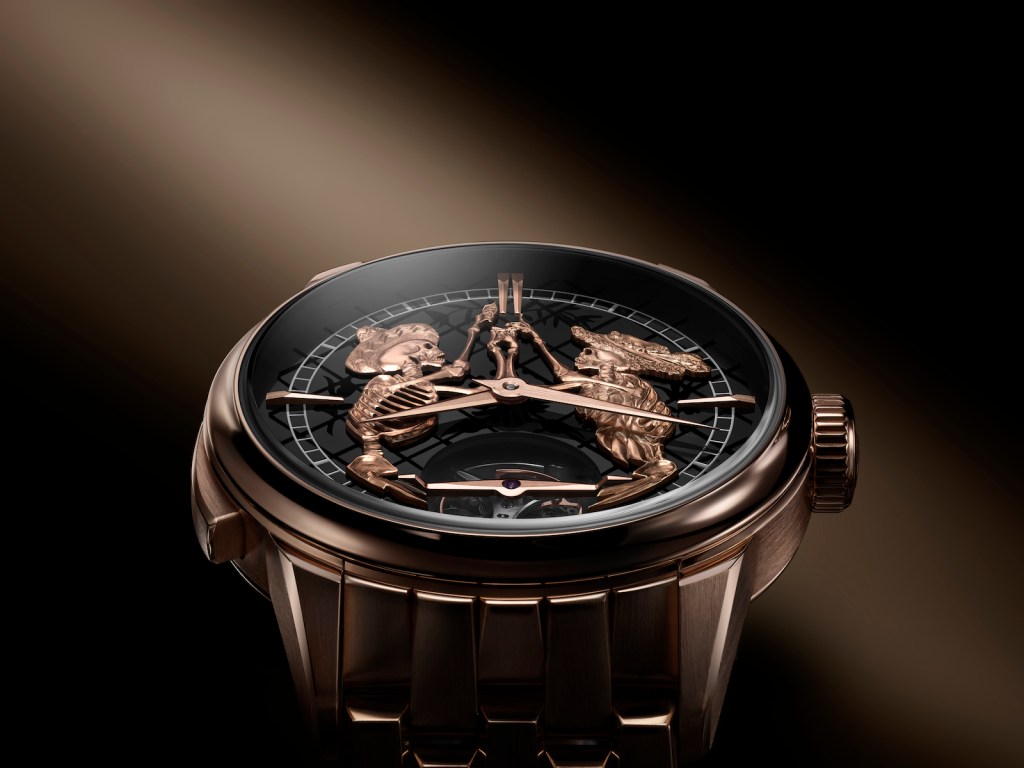 It is an exciting new and unique timepiece that Pierre and Jean-Claude Biver presented at the Salon Internacional de Alta Relojería (SIAR), the trade show devoted to upscale watches, in Mexico City last October. This latest watch celebrates the remarkable Mexican celebration of the Day of the Dead, in which dead ancestors are all a part of the celebrations. The father and son worked in collaboration with Joel Niño – a Mexican artist – to create this unique timepiece, La Danse du Temps (The Dance of Time). Like the house of Biver’s first watch released last March, this festive timepiece is the same Carillon Tourbillon outfitted with a minute repeater, a carillon, a tourbillon and with a stone dial. Just about everything a watch lover dreams of.