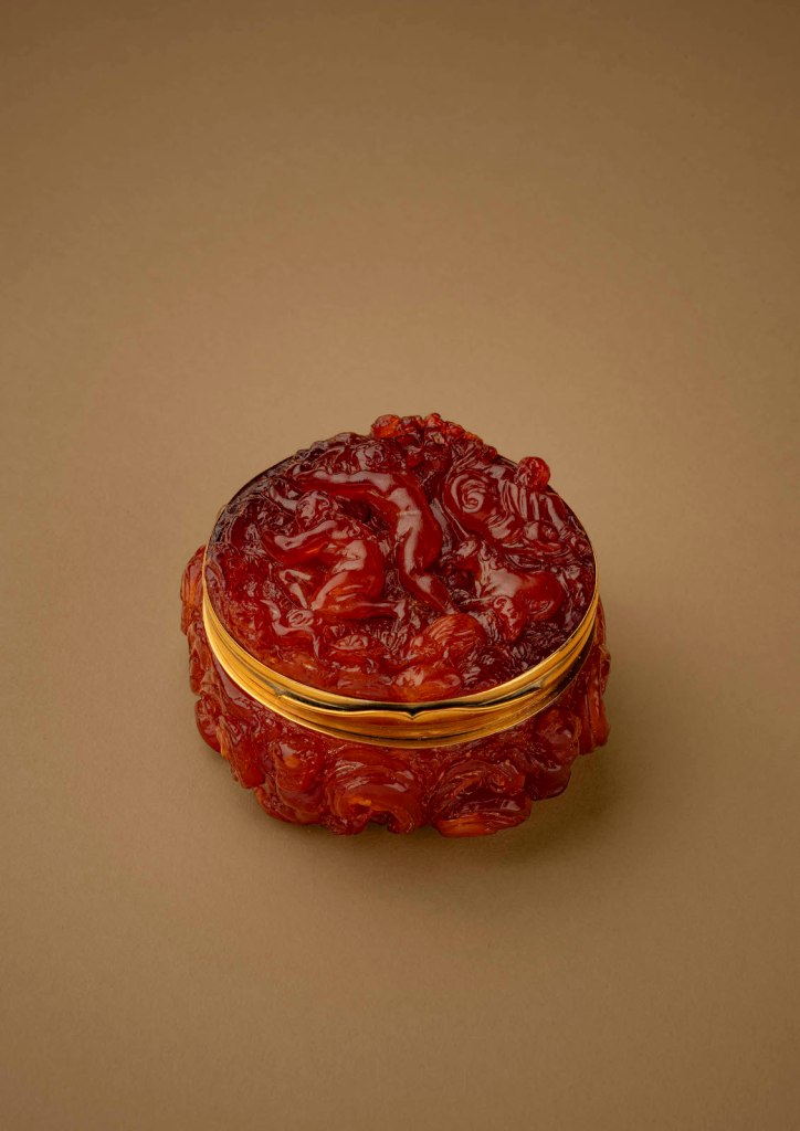 And today it is the object of one of those exceptional once in a lifetime exhibition experiences. The elegant and refined gallery, Galerie Kugel, one of the French capital’s most exceptional galleries, is hosting an unprecedented exhibition showcasing one of the world’s most mysterious and fascinating materials, amber. It has been an object of fascination since Antiquity, and it is found in a range of colors from translucent red to opaque white, and can be even green or blackish. A chessboard, a tankard, myriad statues from the Renaissance, a round box and a stand-out piece — a fantastical creature somewhere between a turtle and a dragon — are among the objects — most of which have never been seen by the public before — that are on display.