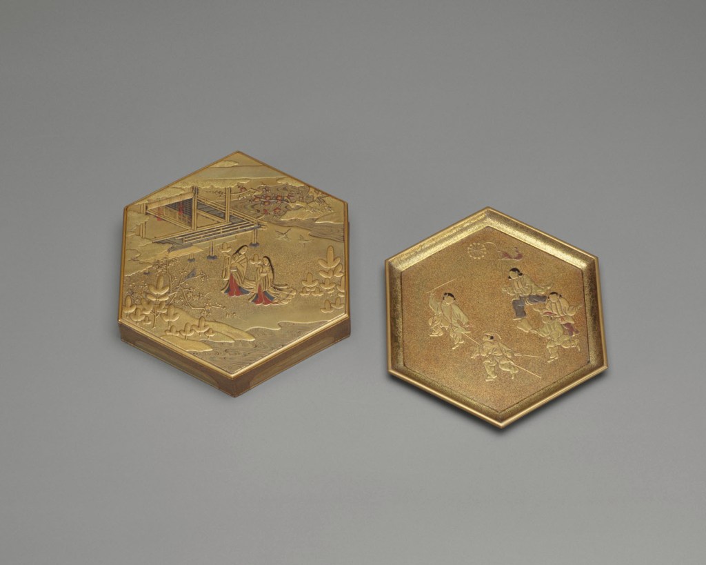 The Musée Guimet in Paris, France’s national museum devoted to the arts of Asia, is celebrating this world in an exhibition entitled At the Court of Prince Genji, a Thousand Years of Japanese Imagination. For the tale has generated an extremely rich iconography influencing even modern-day manga artists. Through the centuries it has inspired numerous Japanese artists and artisans working in myriad mediums including Itaro Yamaguchi (1901-2007), a master weaver from Kyoto, of whom four exceptional woven scrolls are being presented at the exhibition in their entirety for the first time. This pictorial art and creativity, inspired by the Imperial court of the time, which was an era of prolific artistic production, is on display with lacquerware, prints, textiles, kimonos, sculptures, paintings and precious objects from the Guimet Museum’s own collection as well as from other French and Japanese collections. Marie-Antoinette collected lacquerware and most of her collection is conserved at the Chateau of Versailles.