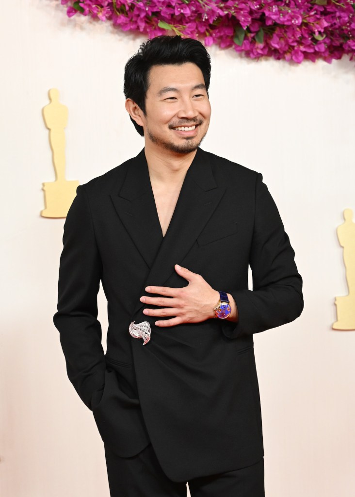 Left: Simu Liu wearing Jacob & Co’s The World is Yours Dual Time Zone timepiece at the 96th Annual Academy Awards in Hollywood, California, Photo Getty Images, courtesy Jacob & Co. Handout via The Gourmet Gazette. Right: Jacob & Co’s The World is Yours Dual Time Zone timepiece. Photo courtesy Jacob & Co. Handout via The Gourmet Gazette