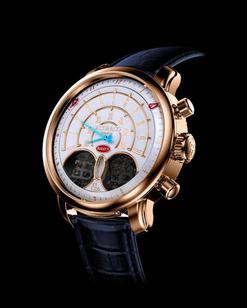 Left: HOLLYWOOD, CALIFORNIA – MARCH 10: Matthew McConaughey attends the 96th Annual Academy Awards on March 10, 2024 in Hollywood, California wearing Jacob & Co’s Jean Bugatti timepiece. (Photo by Aliah Anderson/Getty Images). Photo courtesy Jacob & Co. Handout via The Gourmet Gazette. Right: Jacob & Co’s Jean Bugatti timepiece. Photo courtesy Jacob & Co. Handout via The Gourmet Gazette