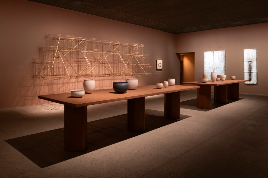 Paris, France — Pigments and chalk, bamboo and silk thread. It is a world of simplicity in earth tones. A world of calm evoking a life force of sorts. This world is unfolding at the Fondation Cartier pour l’art contemporain in Paris in the foundation’s luminous setting surrounded by a glorious garden focusing on local, natural vegetation. These are the works and visions of Bijoy Jain, the founder of Studio Mumbai. The Fondation Cartier has invited the Indian architect to create an exhibition offering up a space for dreaming and contemplation all the while enjoying a dialogue with architect Jean Nouvel’s landmark building in glorious glass.