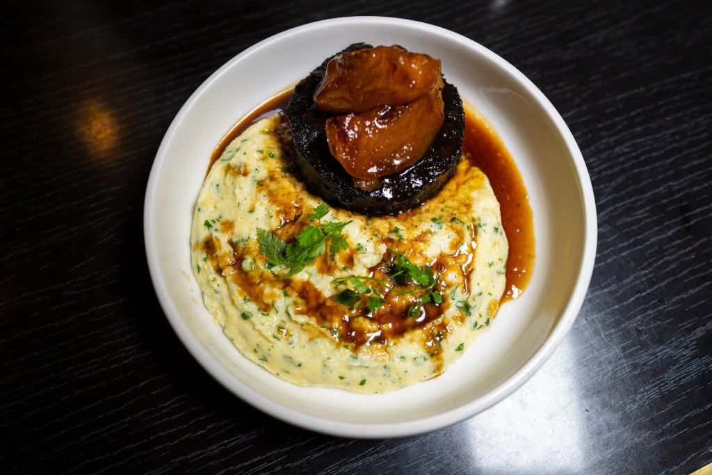 We opted for the house’s very own home-made tarama made with smoked fish roe eggs from the celebrated house of Petrossian and a perfectly executed gravlax of salmon served with yellow and red beets. We also tasted the homemade terrine with a slice of orange that added a nice touch. But there are also seasonal soups on hand and we saw a delicious mushroom stir fry go by. The main courses included some vegetarian options including a platter of roasted root vegetables and a truffle risotto. We went with the very tender and slowly cooked chuck steak served with parsnips and sea bass served with fascinating and delicious herb-filled mashed potatoes.