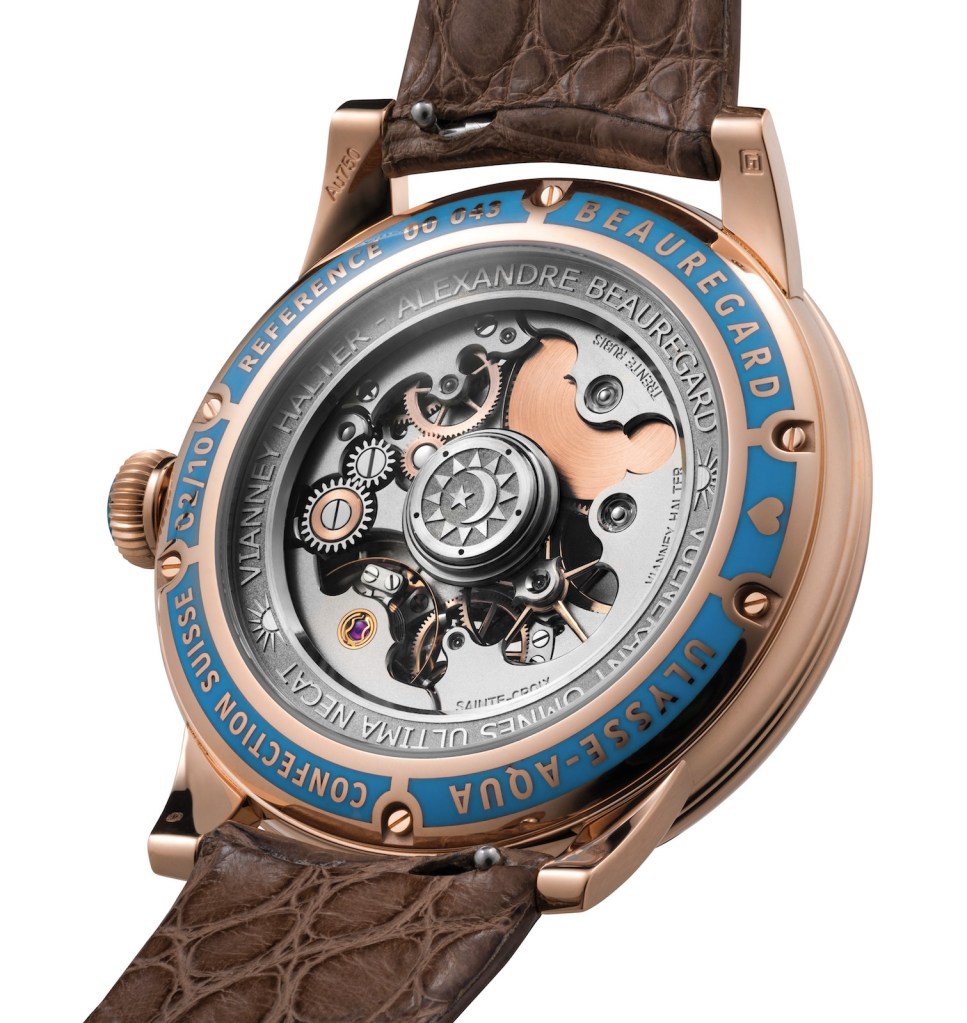 Geneva, Switzerland — Watches and Wonders is underway in Geneva this week and one of the wonders that has been revealed is Ulysse, the first men’s watch for the house of Beauregard who has teamed up with the legendary master watchmaker, Vianney Halter. Under the creative leadership of Beauregard’s founder Alexandre Beauregard, the brand’s inaugural men’s watch, Ulysse is imbued with the artistic signature and technical mastery of the two creators. The watch is more than a timepiece, it is a work of art showcasing the art of high jewelry making that can be worn upon the wrist. The watch has been brought out in a limited edition of 10 pieces. This is a wonderful world featuring aquamarines of perfect clarity and which underwent a three-year development phase. Alexandre Beauregard (who is specialized in the lapidary arts), with a decade dedicated to lovely women’s floral collections, joined forces with Vianney Halter, recognized for his avant-garde approach, in the creation of this unexpected watch.