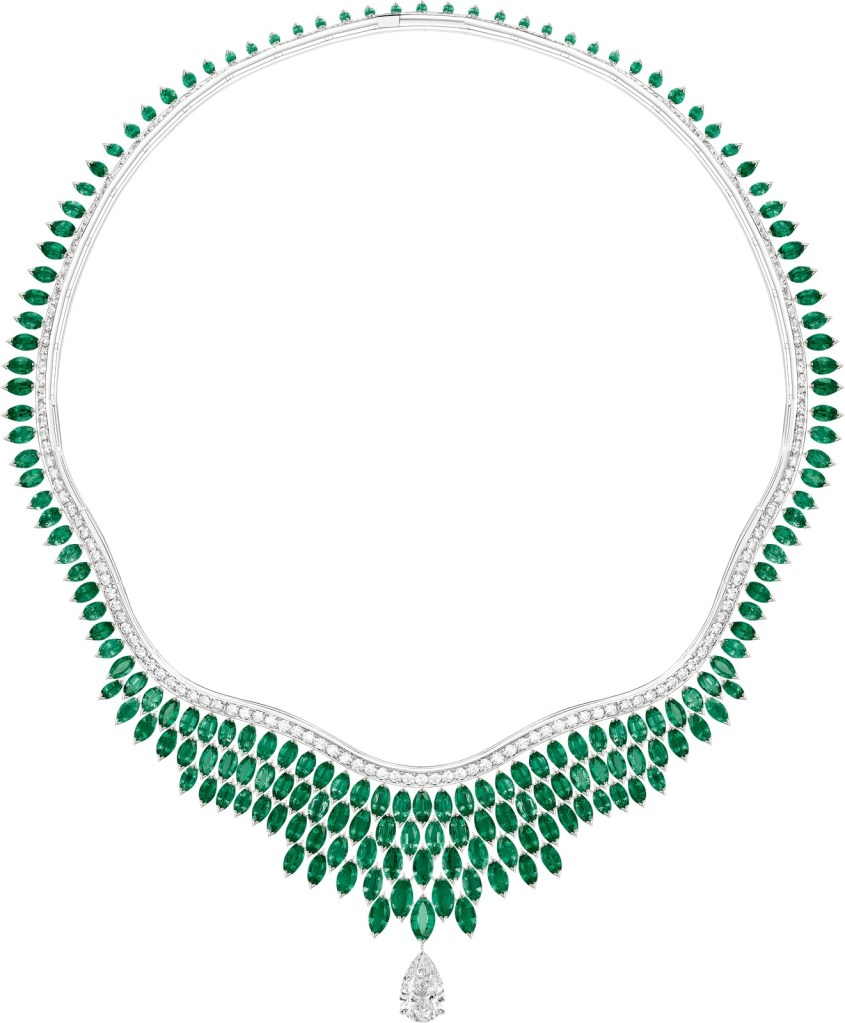 The Luxuriant oasis necklace from the house of Piaget. Outfitted with multiple rows of emeralds. The pear-shaped diamond can also be removed and worn on a white gold chain. This piece required 550 hours of work in the house’s exceptional workshops. Photo courtesy Piaget. Handout via The Gourmet Gazette
