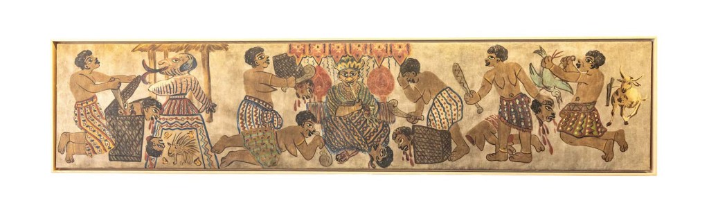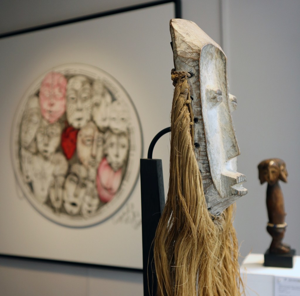 Paris, France —There were the treasures of the influential Kuba Kingdom of the Congo: masks, cups, boxes and textiles. The masks and objects of the Lega people of the Congo are juxtaposed with the modern works of the contemporary Cuban painter Mikimando at the Vallois 41 gallery. A long wall painting on canvas by an unknown artist from Benin depicts the Aftermath of the Battle of Abé Kouta at the end of 19th or early 20th century is being presented by the Galerie Bernard Dulon. And in a knowledgeable nod to the 100th anniversary of the Surrealist movement, founded by André Breton in 1924, an exhibition showcasing the works of tribal art that influenced Surrealist art and literature is being presented by Charles-Wesley Hourdé + Nicolas Rolland. The Surrealists were also early collectors of tribal art. A mask from the Yup’ik Culture of Alaska is a highlight of the Surrealist show.