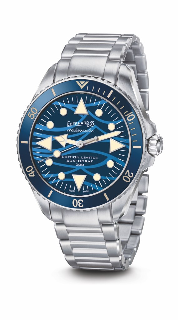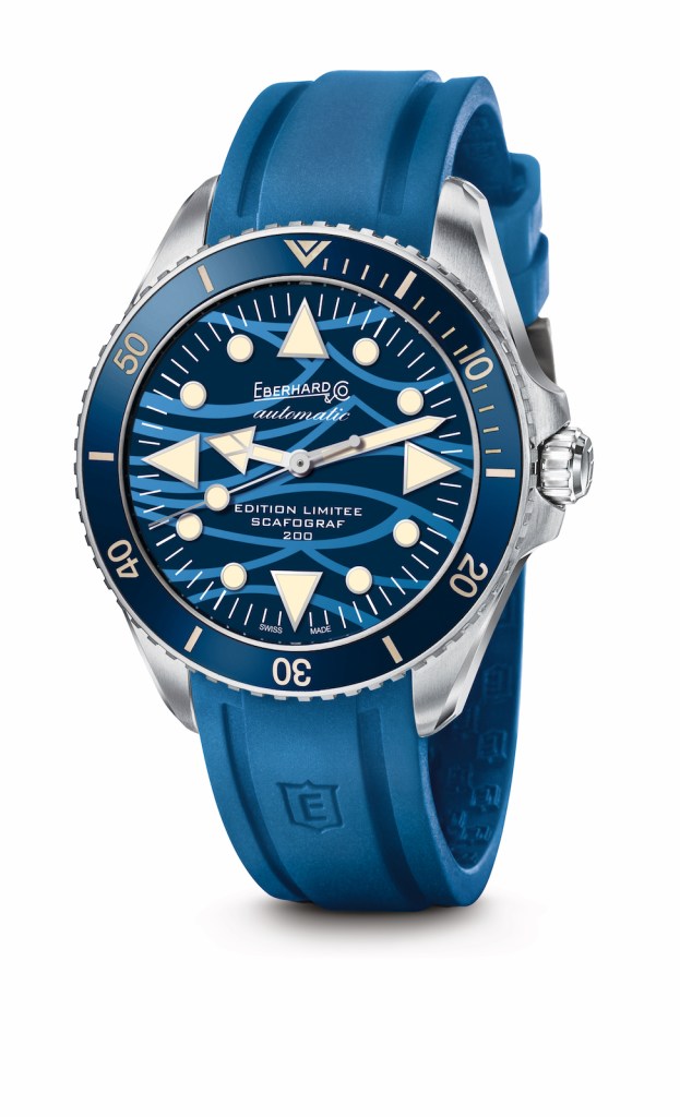 Eberhard & Co.’s Scafograf 200 Limited Edition “Onde Bleue » meaning blue wave. Photo courtesy Eberhard & Co. Handout via The Gourmet Gazette