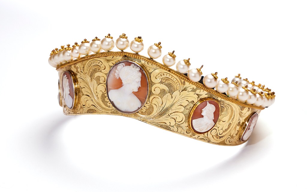 Tiara worn by the popular French actress Rachel in the role of Phaedra in the play by Jean Racine, Act II, 1843 in an alloy of gilded copper with 15 jewels set into the tiara of colored stones and turquoises. Collection Comédie-Française. Courtesy L’École des Arts Joailliers. Handout via The Gourmet Gazette