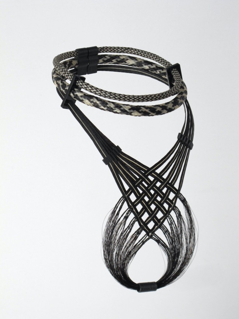 Fine and flexible, horsehair fabrics are woven from the wefts of tail and mane hair taken from horses. It is a long lasting fibre outfitted with great luster and can be easily dyed. The show brings together some 60 pieces and objects illustrating the myriad uses of horsehair and delves into horsehair weaving, a traditional savoir-faire that has existed in Europe since the 17th century but had already existed in Asian societies centuries before. Today a workshop in France perpetuates the tradition using Jacquard looms, producing fabrics for the textile house of Métaphores. Those not very practical, rather stiff petticoats known as crinolines of the 19th century were made of horsehair and the word, crinoline, is derived from the French word for horsehair, crin. The show also delves into its use in furnishings past and present and contemporary art works and creations underscoring the ongoing fascination for this unique fibre.