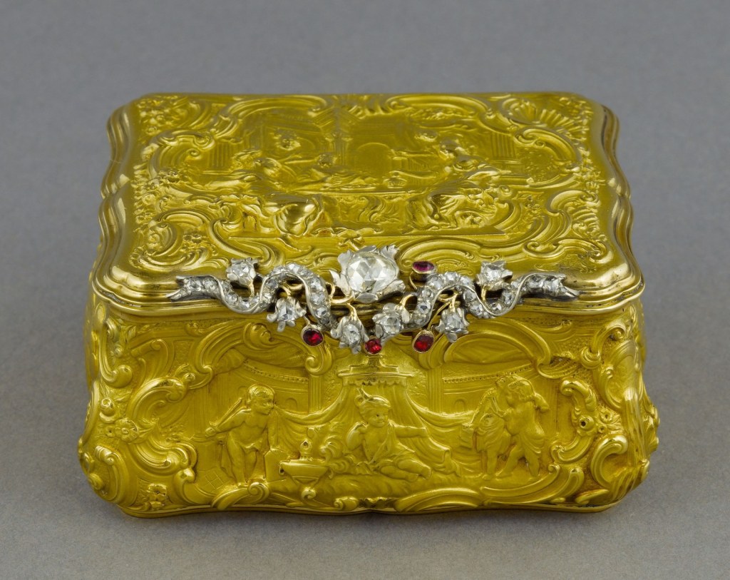 The exhibition revolves around the exceptional collection of Marie-Louise Jay and Ernest Cognacq, who acquired some 260 of these precious bejewelled objects and subsequently bequeathed them to the city of Paris. Objects emanating from the collections of the Louvre, Versailles, the British royal family and the Victoria and Albert Museum have been loaned for the show. The last part of the show presents major pieces from the collections of the House of Van Clef & Arpels and the House of Fabergé from the 20th century and which drew their inspiration from 18th century style.