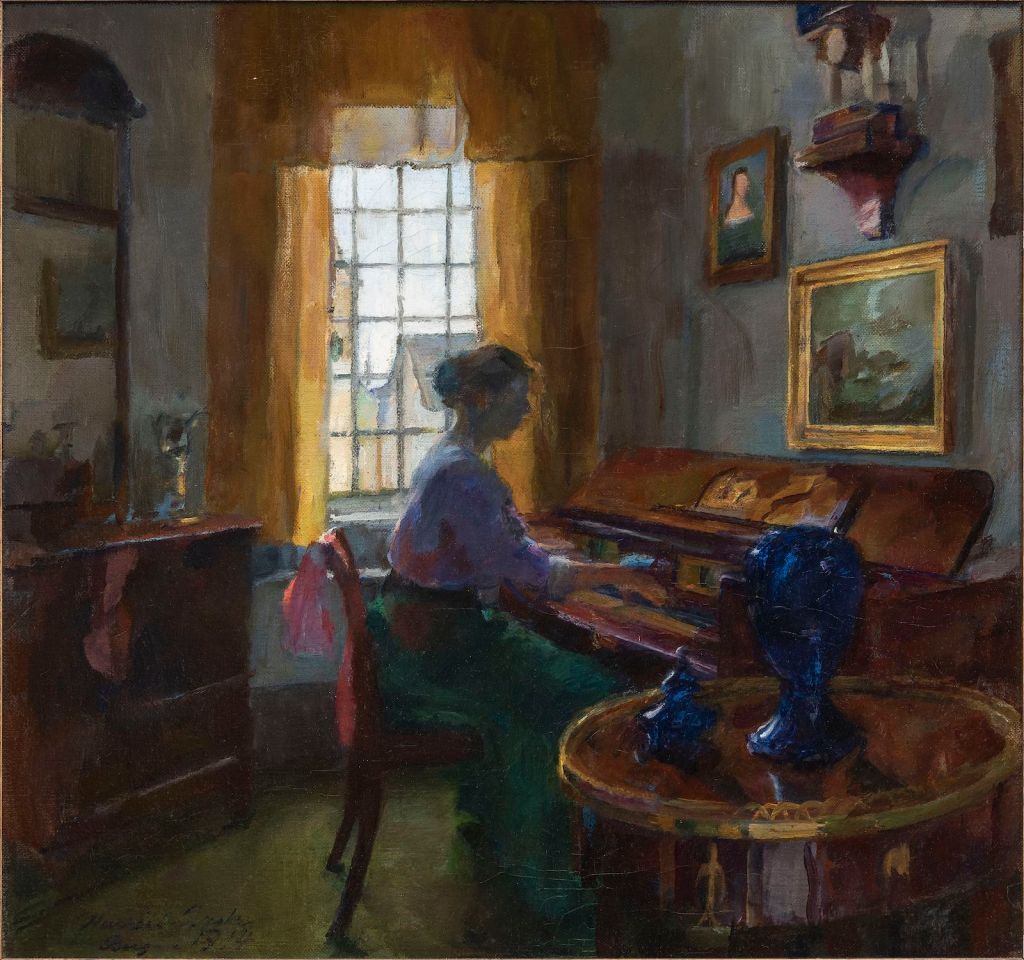 Born in Holmestrand, Norway in 1845, she was the second of four sisters. The oldest, Inga was a popular singer, Agathe was a world-famous pianist and songwriter and Margrethe was a painter as well. The exhibition takes a look at Backer’s artistic education in the great cultural capitals of the time including Munich and Paris. The show then turns to the artist’s preferred themes: rustic interiors, paintings of traditional Norwegian churches, landscapes, and her very particular approach to still-life painting. Harriet was particularly close to Agathe the pianist and she placed music at the heart of her work, both as subject and model through the use of touch, rhythm and subtle colors. Her nephew, Inge’s son, Johan Backer Lunde was also a composer and Backer herself was a trained pianist. She wanted one of her paintings, At Home, depicting the studio-apartment that Backer shared in Paris, to be « music for the eye. »