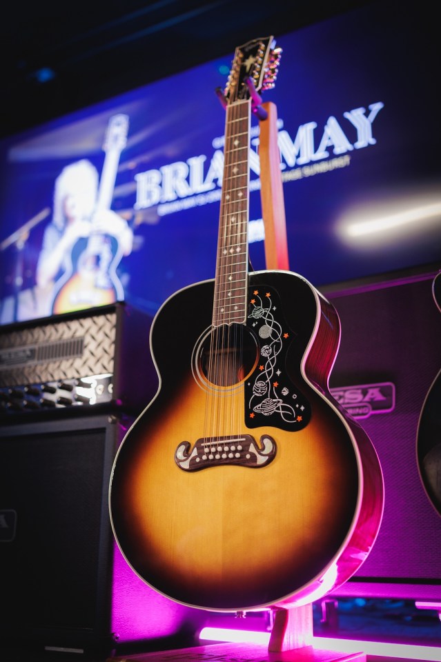 LONDON, UK —Queen legend Sir Brian May was on hand last February 18th to launch the brand-new Gibson Custom Brian May SJ-200 12 String acoustic guitar. This is his first model with the iconic and leading global instrument brand, and the launch kicked off Gibson Garage Fest—a week-long series of events celebrating the one-year anniversary of the Gibson Garage London. The songs performed by Sir Brian May on the new 12- string guitar included Queen’s “Love Of My Life” and a beautiful rendition of “So Sad (to Watch Good Love Go Bad)” by The Everly Brothers. “It’s a dream come true, as soon as I held the guitar, I thought this is what I need. It has such presence and such a beautiful breadth of sound. Gibson has done the most beautiful job, it has the lovely solar system on it, including Mercury, but the most important thing is it sounds massive, » said the musician, commenting on his collaboration with Gibson.