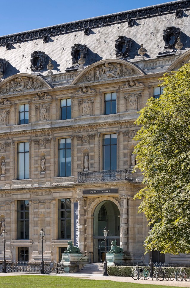 Paris, France — It is discreetly tucked into a corner of the Louvre Palace in the center of Paris looking out to the Seine and the Tuileries Gardens. This is one of the most prestigious schools in the world devoted to art history, archaeology, epigraphy, anthropology and museology. Jacqueline Bouvier Kennedy studied there as did the Franco-American artist Arman and Laurence des Cars, the current and first woman director of the Louvre Museum. « There » is the Ecole du Louvre which has been the educational institution that has taught and trained leading museum curators and people involved in the art world since 1882. Some 1,800 students a year study there and enjoy a unique learning environment: the Louvre itself housing one of the world’s largest and finest collections of art in the world from all periods, lands, civilizations and mediums. It is a higher education establishment of the French Ministry of Culture offering three degree courses and preparatory classes for the competitive examinations to become a heritage curator or a heritage restorer. And all courses are available for continuing education and some art history courses are available to auditors.