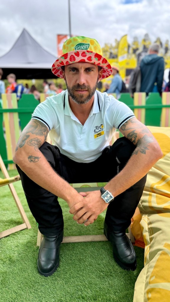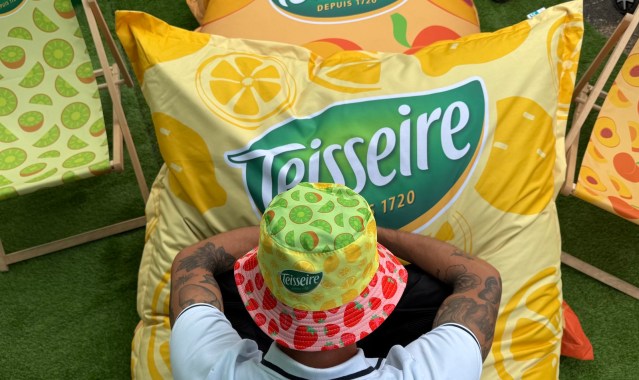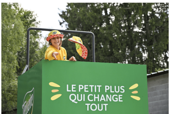 Fruits figured prominently on the sunhat in a nod to the core Teisseire business of creating fresh fruit syrups to turn into refreshing and vitamin and mineral-filled drinks. During the Tour, Teisseire terraces were set up in fan zones around the country to enjoy a refreshing drink made with the house’s traditional syrups as well as four new vitamin-enriched offerings. « Fruit Squads » were also set up to hand out refreshments to the crowd awaiting the arrival of the racers. Pineapple-mango with vitamin C, peach-guava with magnesium and strawberry-kiwi with the B complex of vitamines were among the offerings.