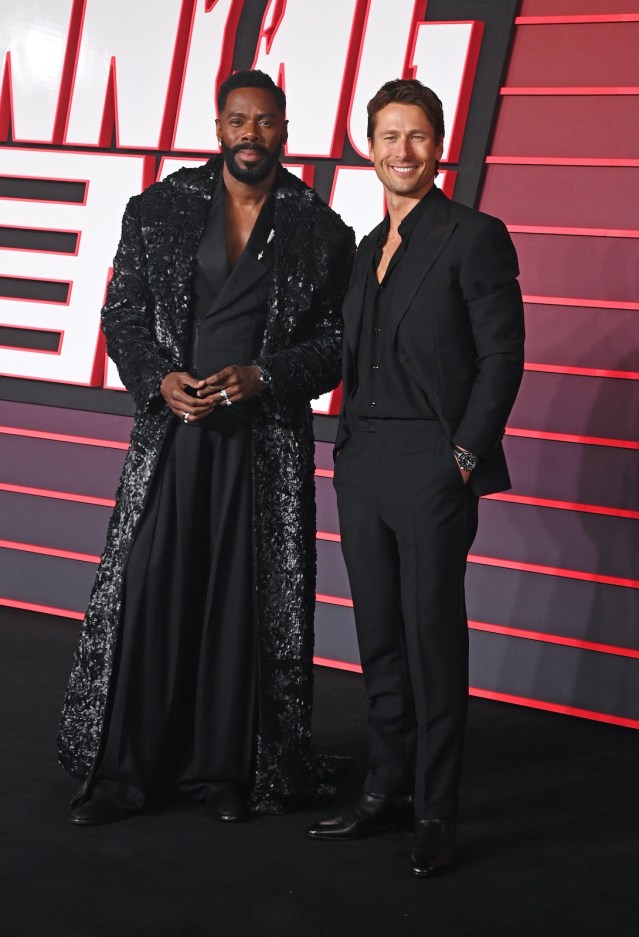 LONDON, ENGLAND – NOVEMBER 05– Colman Domingo and Glen Powell attend the UK Premiere of “The Running Man” at Odeon Luxe Leicester Square on November 5, 2025 in London, England wearing Omega watches. (Photo by Alan Chapman/Dave Benett/WireImage). Courtesy Omega. Handout via The Gourmet Gazette