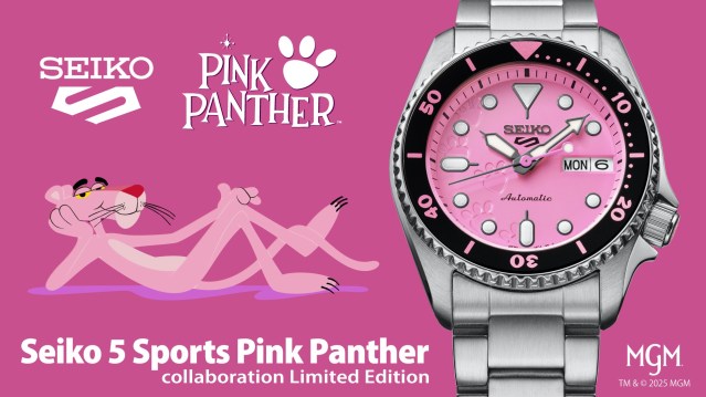 The Pink Panther watch , left back, right front. © + ® MGM. Photos courtesy Seiko. Handout via The Gourmet Gazette