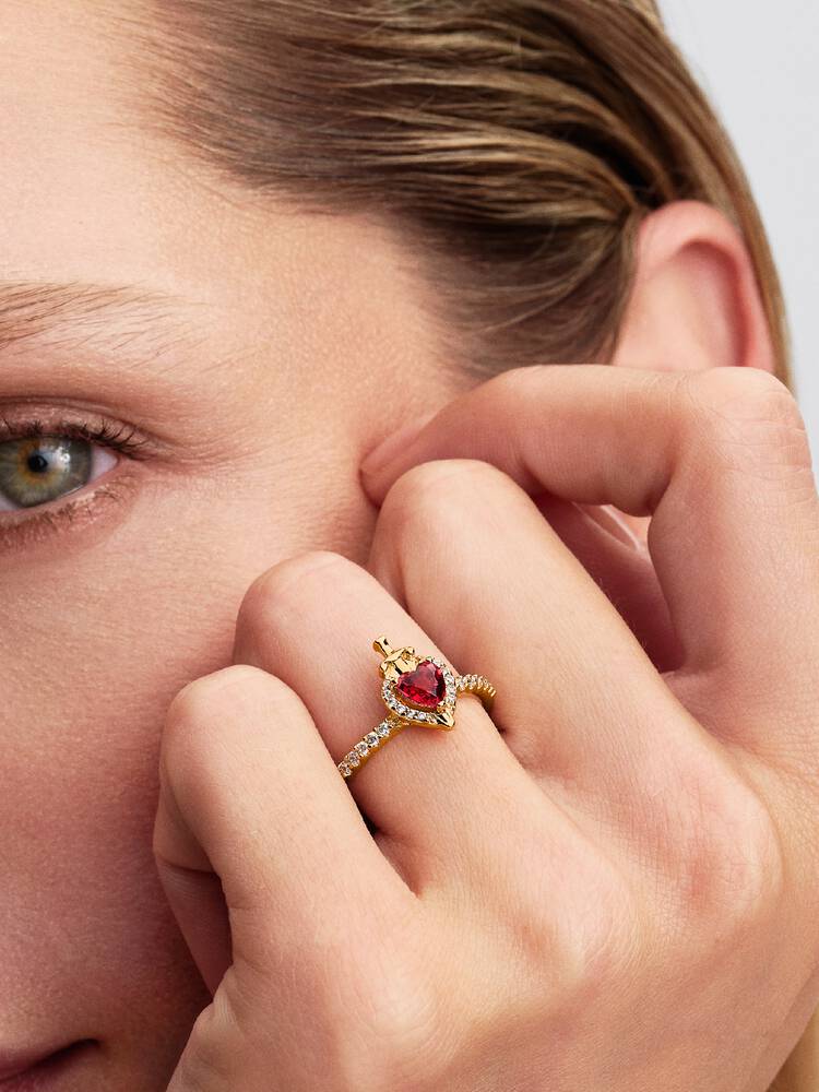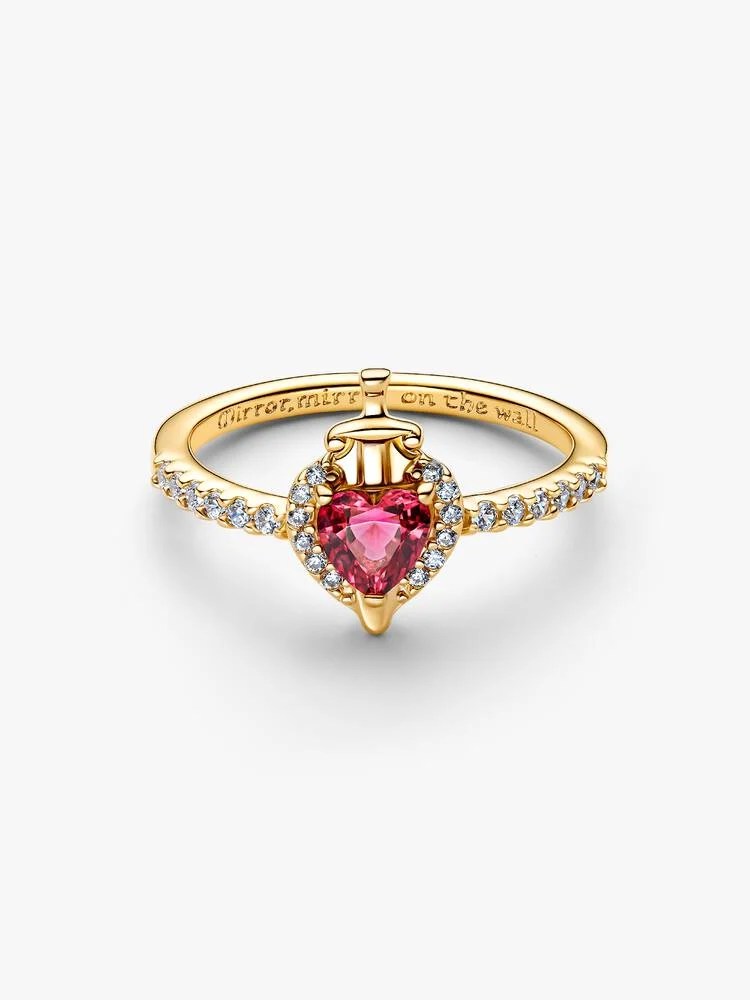It glitters, wickedly. The new ring brought out in a collaboration between Disney and the Danish jewelry house of Pandora celebrates the Evil Queen, also known as the Wicked Queen, in Snow White. The eye-catching ring boldly embraces the dark side of storybook characters with its glowing heart-shaped pink fuscia synthetic crystal taking front line and center while it is set with sparkling zirconia mounted onto gold metal lined with 14 carat gold or alternatively silvery metal. And inside the ring’s band, the infamous « Mirror, mirror on the wall, » and we know how that winds up. The ring, part of the wicked Disney characters series joins a parade of rings and charms in the Disney X Pandora collection available at pandora.com or https://fr.pandora.net/fr/bagues/bague-les-mechants-de-disney-reine-sorciere/163422C01.html Pandora is a Danish jewelry manufactuerefounded in 1982 by Per Enevoldsen and is known throughout the world for its charm bracelets. See also: https://thegourmetgazette.com/2025/05/12/the-charm-of-stitch/