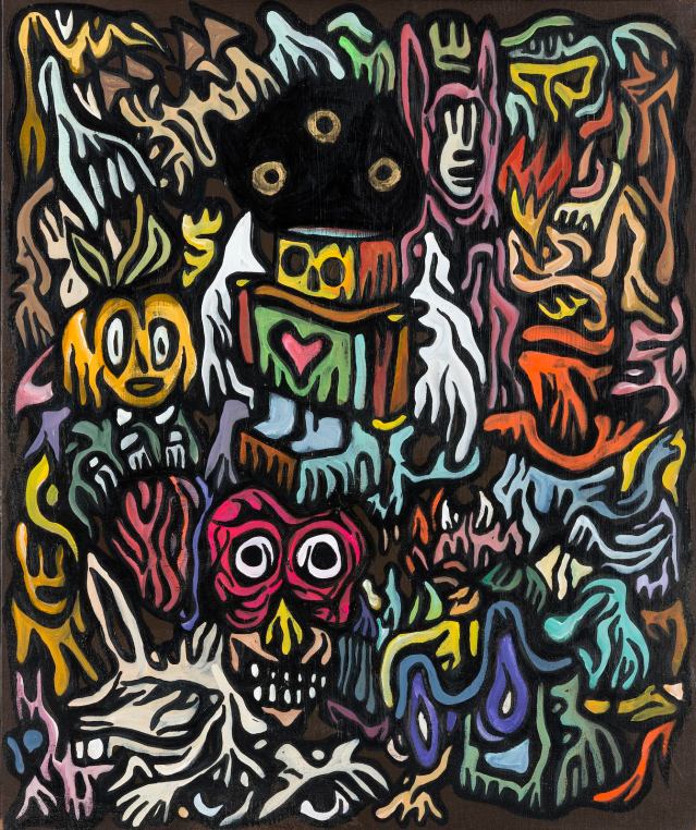 The vivacious works of Verschaere (which often contain a self-portrait of the artist) are joined by the totemic and geometric works of the Japanese artist Yu Maeda. Color is the centerpiece of French artist Vincent Ruffin, who only he alone knows the secret to the blue that emanates from one of his works in the show, The Wrestler. Miyaoka Takami hails from a family of Japanese potters and he has developed contemporary works that blend together traditional pottery with contemporary Pop culture. They are joined by a major figure of contemporary painting Gérard Garouste whose work draws a radiant inspiration from mythology and literature, as well as a host of other artists.