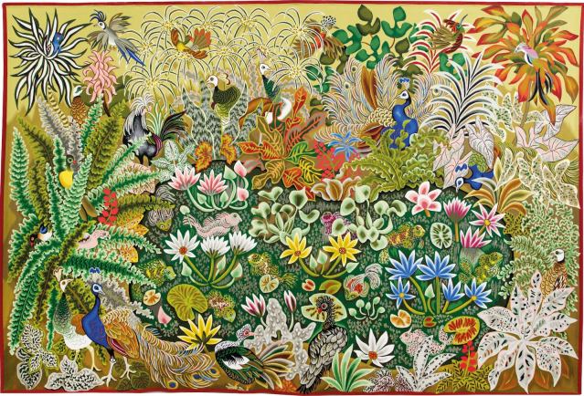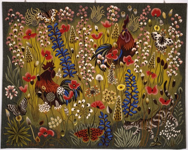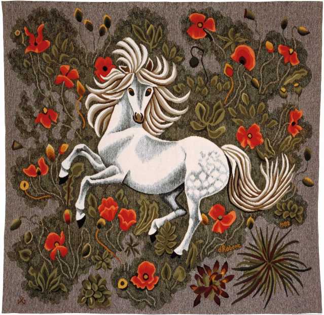Thousands of wild flowers, a bright rendering of the spring, a dancing horse and fanciful peacocks all form the imaginative world of Dom Robert, Benedictine monk, artist and a master of contemporary tapestry making for he found his true calling as a tapestry painter. His art and religion found their home at the Benedictine Abbey of Calcat in the Dourgne region of central southern France, a region of luminous beauty, evocative and bursting with the nature that Dom Robert drew his inspiration from particularly for his tapestry work.