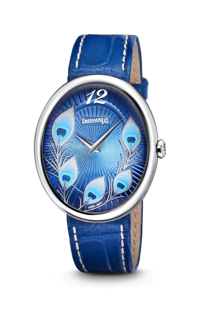 The Gilda watch from Eberhard with its Peacock dial. Photo courtesy Eberhard. Handout via The Gourmet Gazette