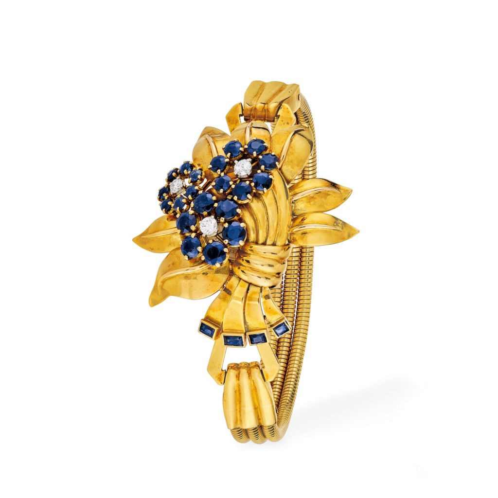 The Secret Flowers Bracelet-Watch, 1940, yellow gold, diamonds, sapphires. Collection Van Cleef & Arpels. Photo courtesy Van Cleef & Arpels. Handout via The Gourmet Gazette